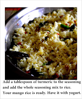 Mango rice is my favourite among the raw mango recipes. You will need the following.